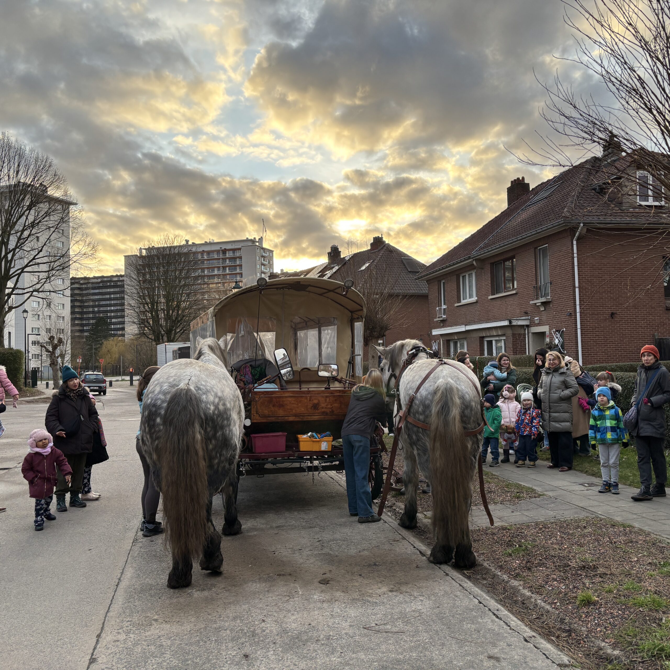 Le 10 janvier, Goliath et Germinal, deux superbes percherons ont promené en calèche des groupes d’enfants et de parents à la découverte de notre quartier. Vous avez été très nombreux à vous joindre à l’aventure et/ou à partager un moment chaleureux autour d’une boisson chaude et d’un feu de bois.
